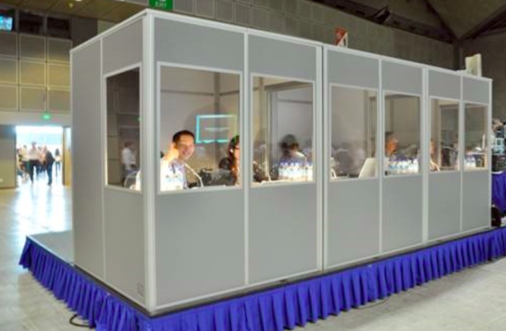 On-site Simultaneous Interpreters usually operate in “simultaneous interpreting booths”: soundproof cabins which ensure optimal sound quality and avoid disturbing the audience. These booths also have to be rented and installed at the venue. Having opted for radio infrared or Bidule interpreting solutions, appropriate staff will be needed to organize the distribution of the headset receivers to the participants (as well as their collection at the end of the event). As these receivers are expensive the staff will need to use appropriate tracking methods to ensure no devices fail to be returned or get lost.